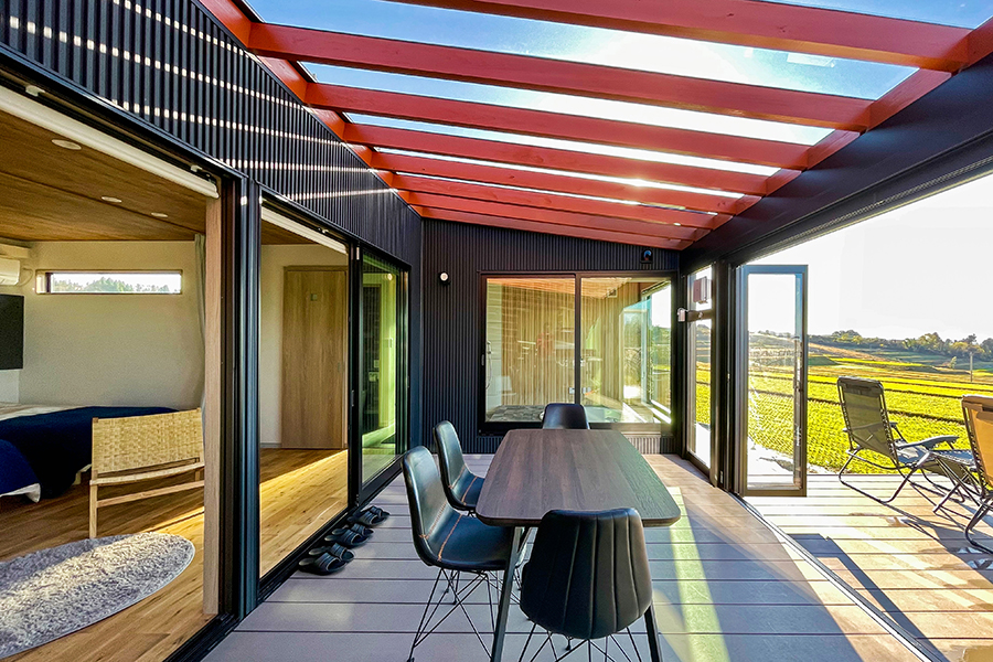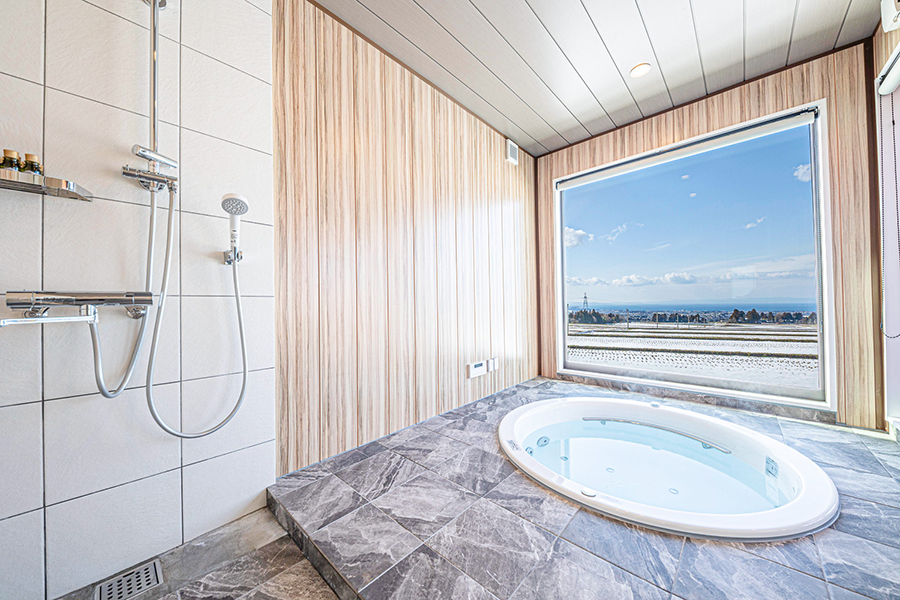 著重私隱的獨棟客房,設有面向富山灣的寬敞露台空間、用餐空間以及木桶桑拿,讓你能在完全私密的空間中悠閒地享受時光。